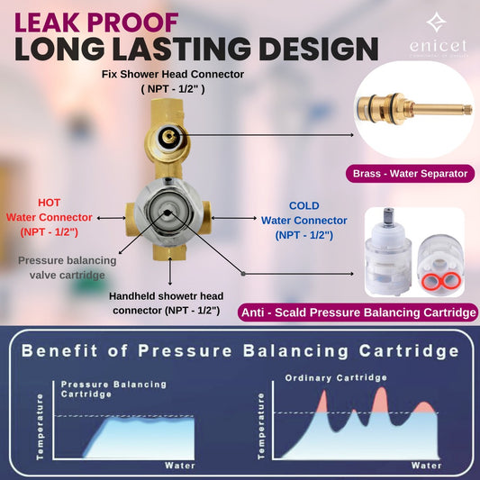 Enicet Single Lever High Flow Diverter, rust-resistant, With Upper Parts Set, Chrome Finish, Leak Proof, Bathroom Shower System, Concealed Body And Exposed Parts, Bathroom Mixer Tap