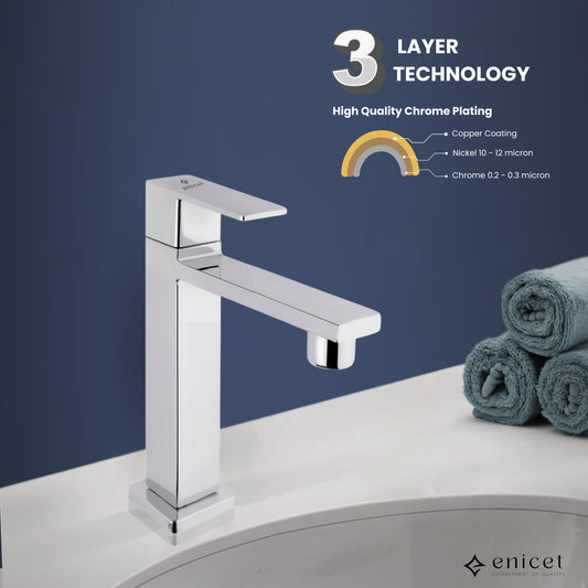 ENICET Single Lever Basin Mixer, 7 Inch Tall, Brass Build, Chrome Finish, Hot and Cold Mixer Tap for Bathroom, Sink Mixer for Kitchen, Water Tap for Wash Basin