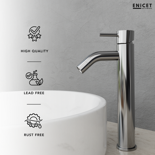 ENICET Pillar Cock for Bathroom Basin, Stainless Steel-304, 7 Years Warranty, Chrome Finish, Bathroom Table Top Wash Basin Tap, Deck Mount Pillar Tap
