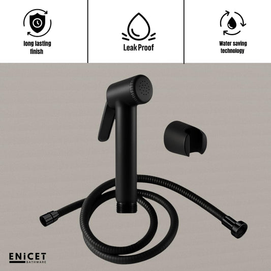 Enicet Health Faucet Gun with 1 Meter Stainless Steel Tube and Holder, Jet Spray for Toilet with Hose and Holder, Hand Jet Bidet Spray for Bathroom, Made Black(AEA180 BLACK)