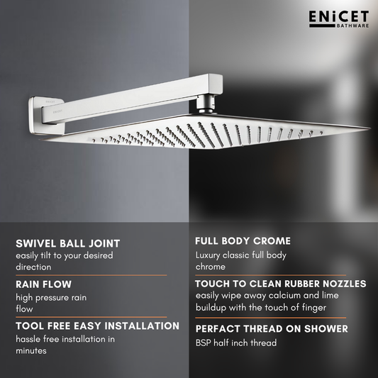 Enicet rust-resistant High Flow Diverter Set With 12 Inch Overhead Shower, Chrome Finish, Bathroom Shower Set, Shower System, Hot And Cold Water Mixer Tap