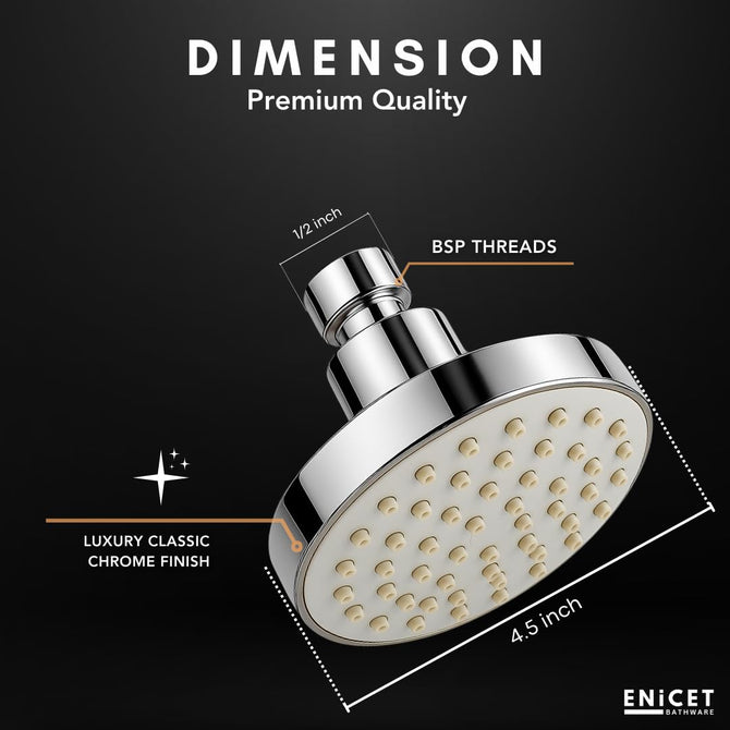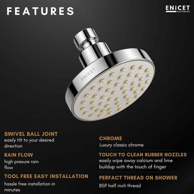ENICET ABS Shower Head For Bathroom, 4 Inch Overhead Rain Shower, Soft Easy To Clean Rubber Nozzles, Without Arm, High Pressure Round Sawar, 1 Year Warranty (4 INCH ROUND SILVER)