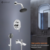 This diverter combo is perfect for any modern bathroom, featuring a wall mixer for bathroom 3 in 1 that allows easy switching between the shower, spout, and other connected outlets. Ideal for homeowners looking for a shower set for a bathroom, the 3-way pipe connector makes installation easy, and the multi-tap connector ensures compatibility with various bathroom taps and mixers.