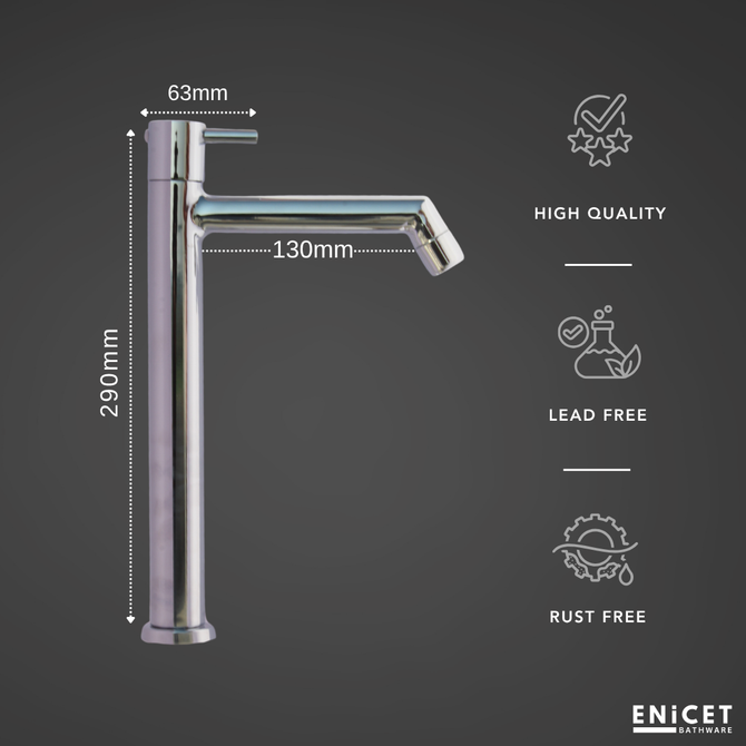 ENICET Pillar Cock for Bathroom, 12 Inch Tall Extended Body, Chrome Finish, Table Top Wash Basin Water Tap for Bathroom, Kitchen Sink Tap