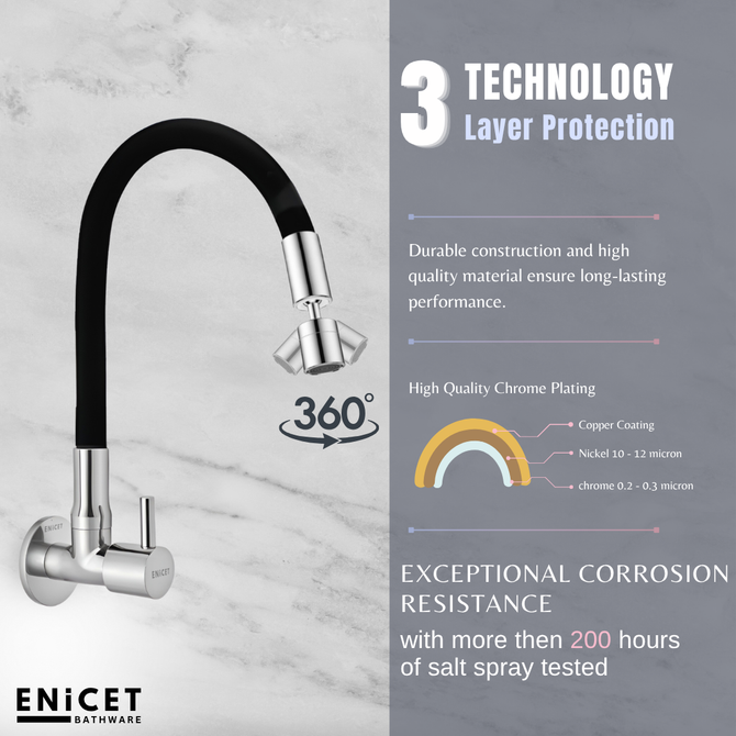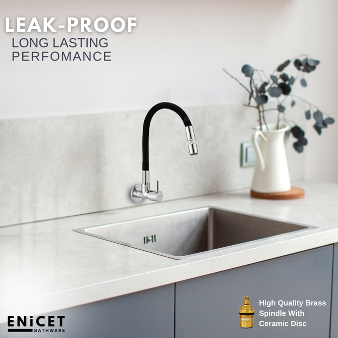 ENICET Dual Flow Sink Tap with Flexible Spout, 360 Rotating Swivel Swinging Spout, Brass Build, Kitchen Sink Tap, Tap for Kitchen Sink, Wash Basin Tap