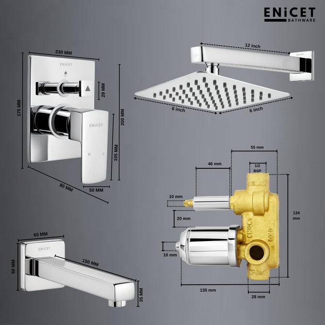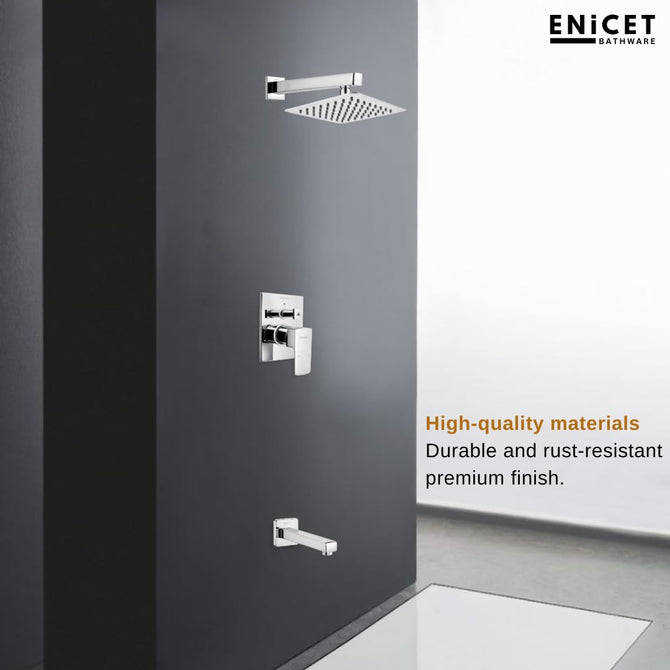 The Enicet rust-resistant High Flow Diverter Set with 6-Inch Overhead Shower is designed to elevate your bathroom experience with its durable brass construction and high-performance features. The 6-inch overhead shower provides a rainfall-style water flow that covers a wide area, making every shower refreshing and enjoyable.