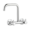 The dual handle design allows for precise temperature control, whether you're washing dishes or cleaning vegetables. Its wall-mounted installation saves counter space while adding a sleek and contemporary touch to any kitchen. Finished with high-quality chrome plating, it resists tarnishing and wear, maintaining its polished appearance over time.