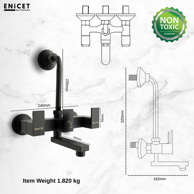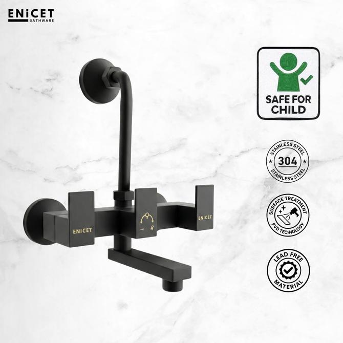 Upgrade your bathroom with the ENICET QUBICS Wall Mixer 2 in 1 with Bend, a stylish and functional black shower mixer designed for overhead shower systems. This 2-in-1 wall mixer combines hot and cold water seamlessly, delivering balanced flow and modern aesthetics in one compact unit.
